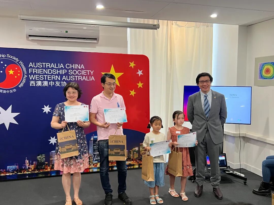 本次颁奖典礼得到了中国驻澳大利亚大使馆和中国驻珀斯总领事馆的大力支持。西澳澳中友协会长吴粤先生、王凤忠副总领事、杨帅议员、高日昇议员等共同为获奖青少年颁奖。大使馆还特别为获奖选手们颁发了奖品,鼓励青少年们关注世界的发展,创作出更好、更有意义的作品。